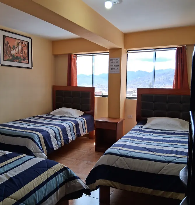 Pokoje hotelu Hostal Kuntur Cusco wychodzą na miasto.